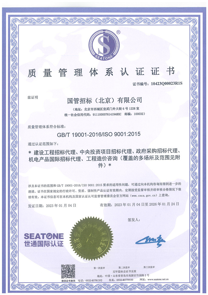 質量管理體系認證證書